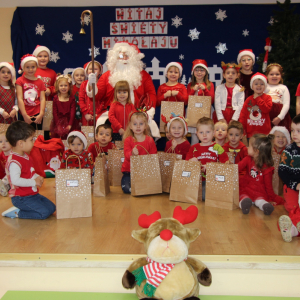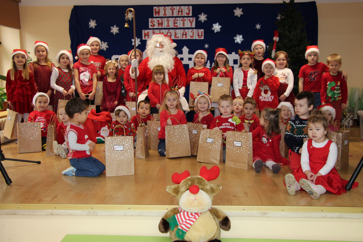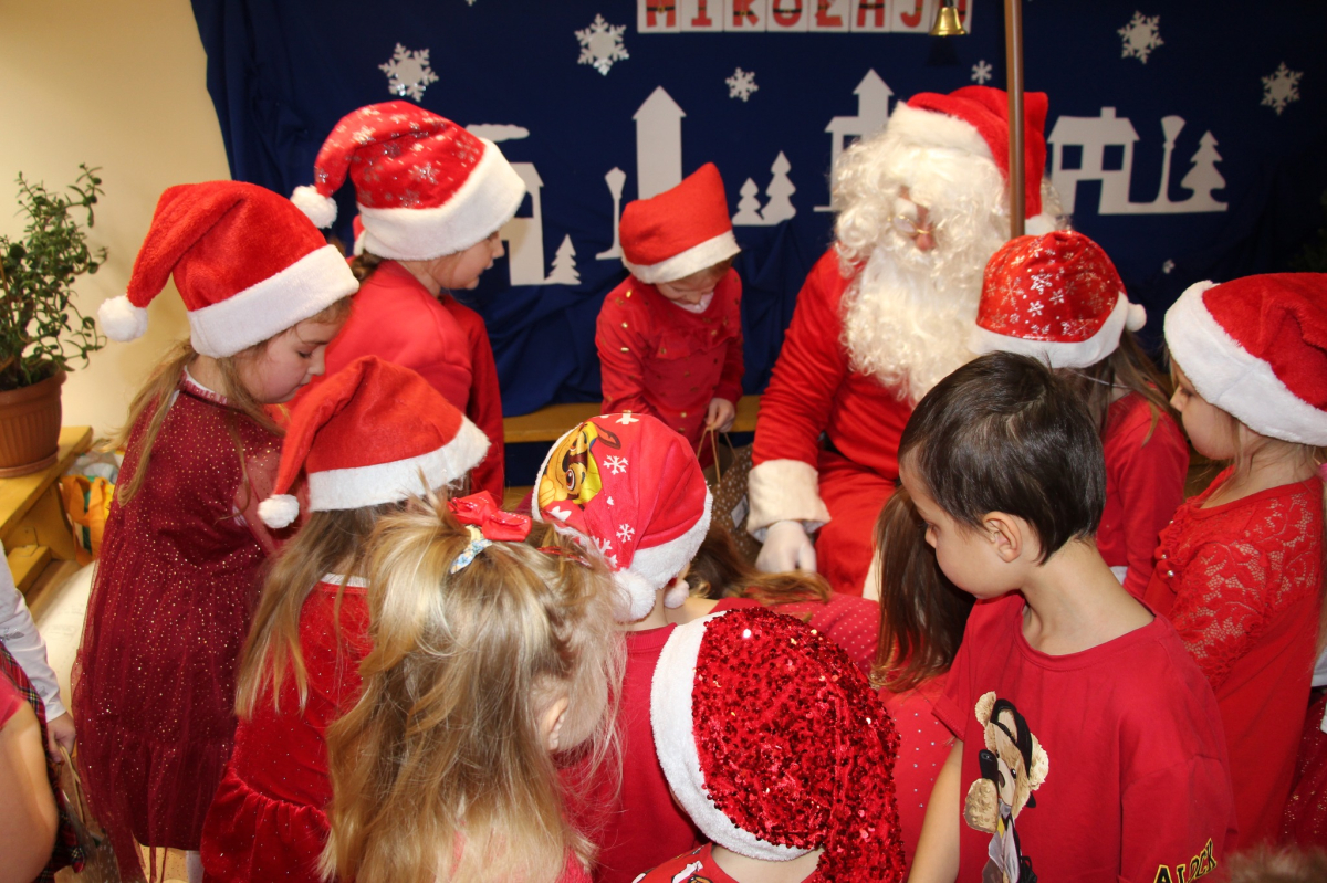 Wizyta świętego Mikołaja w naszym przedszkolu to jeden z najbardziej oczekiwanych przez dzieci dni w roku. Dzieci zawsze przygotowują się do niego z największą przyjemnością i starannością. Tak było i tym razem, wszystkie dzieci nauczyły się pięknie śpiewać piosenkę dla Mikołaja. 4 grudnia dzieci z wielką niecierpliwością nasłuchiwały mikołajowych dzwoneczków. Święty Mikołaj nie zawiódł dzieci i nie kazał długo na siebie czekać. Już z samego rana zawitał do naszego przedszkola. Dzieci bardzo przeżywały to spotkanie. Na ich twarzach malował się uśmiech i widać było mnóstwo radości. Na początek dzieci pięknie zaśpiewały wyuczoną piosenkę. Następnie niezwykły gość obdarował każde dziecko wspaniałym prezentem i zaprosił każde dziecko do wspólnego zdjęcia pamiątkowego.