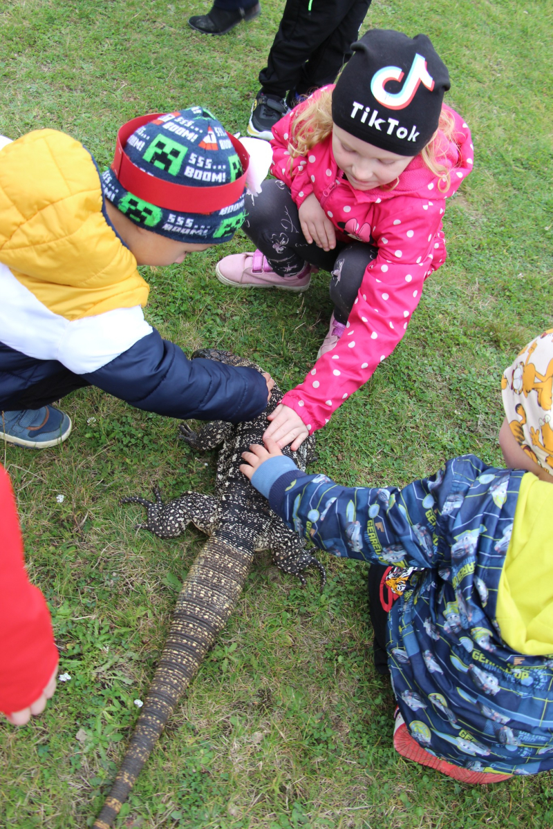 Dzieci z grupy „Pszczółki” wybrały się na wystawę zwierząt egzotycznych do Tęczowi mieszkańcy Amazonii i Madagaskaru - pokazy i wystawy zoologiczne. Podczas spotkania dzieci wysłuchały ciekawostek na temat zwierząt, które można było obejrzeć na miejscu. Miały okazję z bliska zobaczyć węże, jaszczurki, latające wiewiórki i wiele innych ciekawych zwierzątek. Po wystawie zwiedziliśmy mini zoo, gdzie na żywo podziwialiśmy zwierzęta różnych gatunków. Ta wyjątkowa lekcja przyrody na długo zapadnie w naszej pamięci, z pewnością uwrażliwiła ona dzieci na piękno otaczającej nas przyrody oraz wzbudziła poczucie odpowiedzialności za nią. Jeszcze raz bardzo serdecznie dziękujemy!