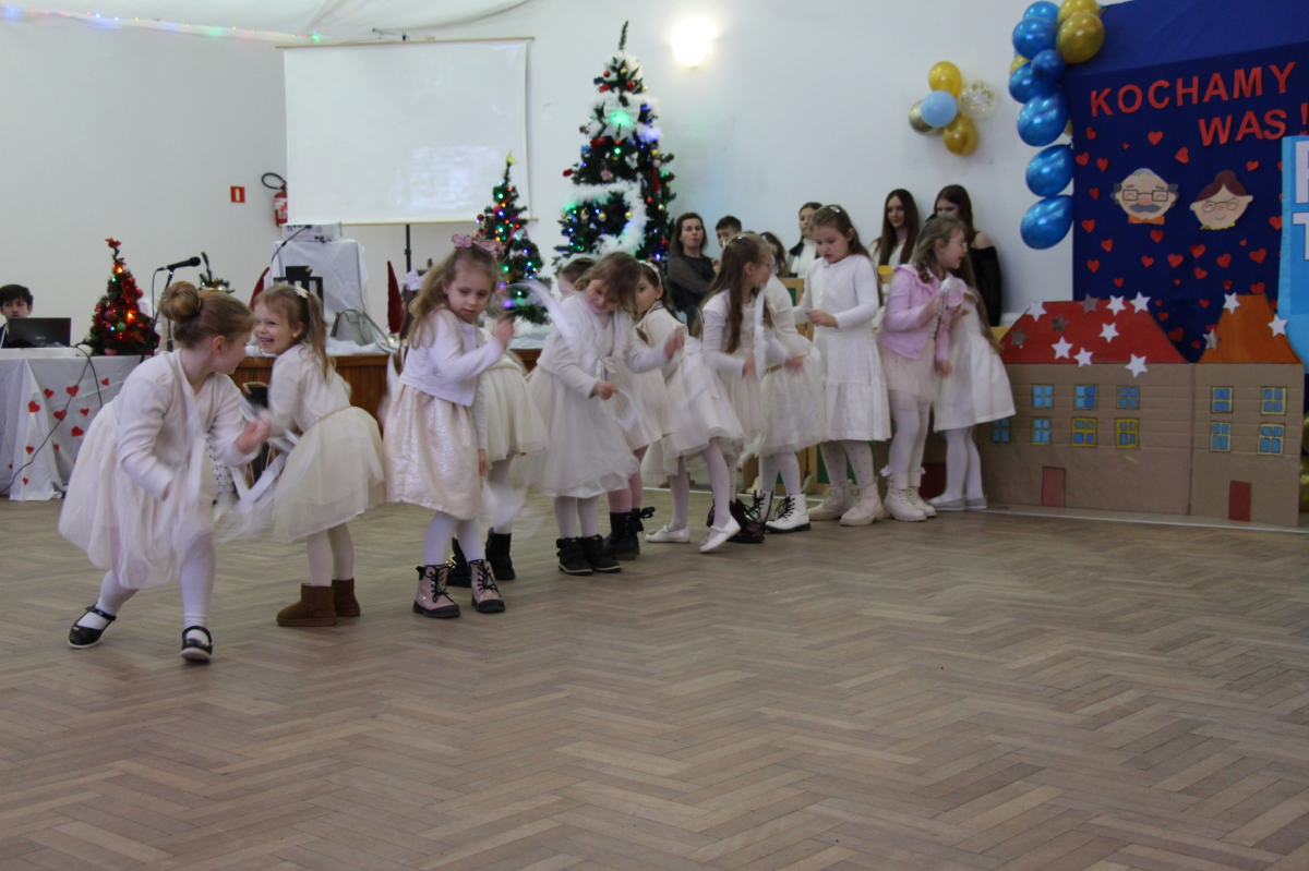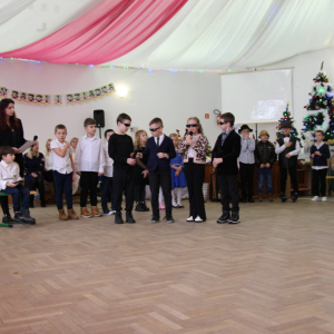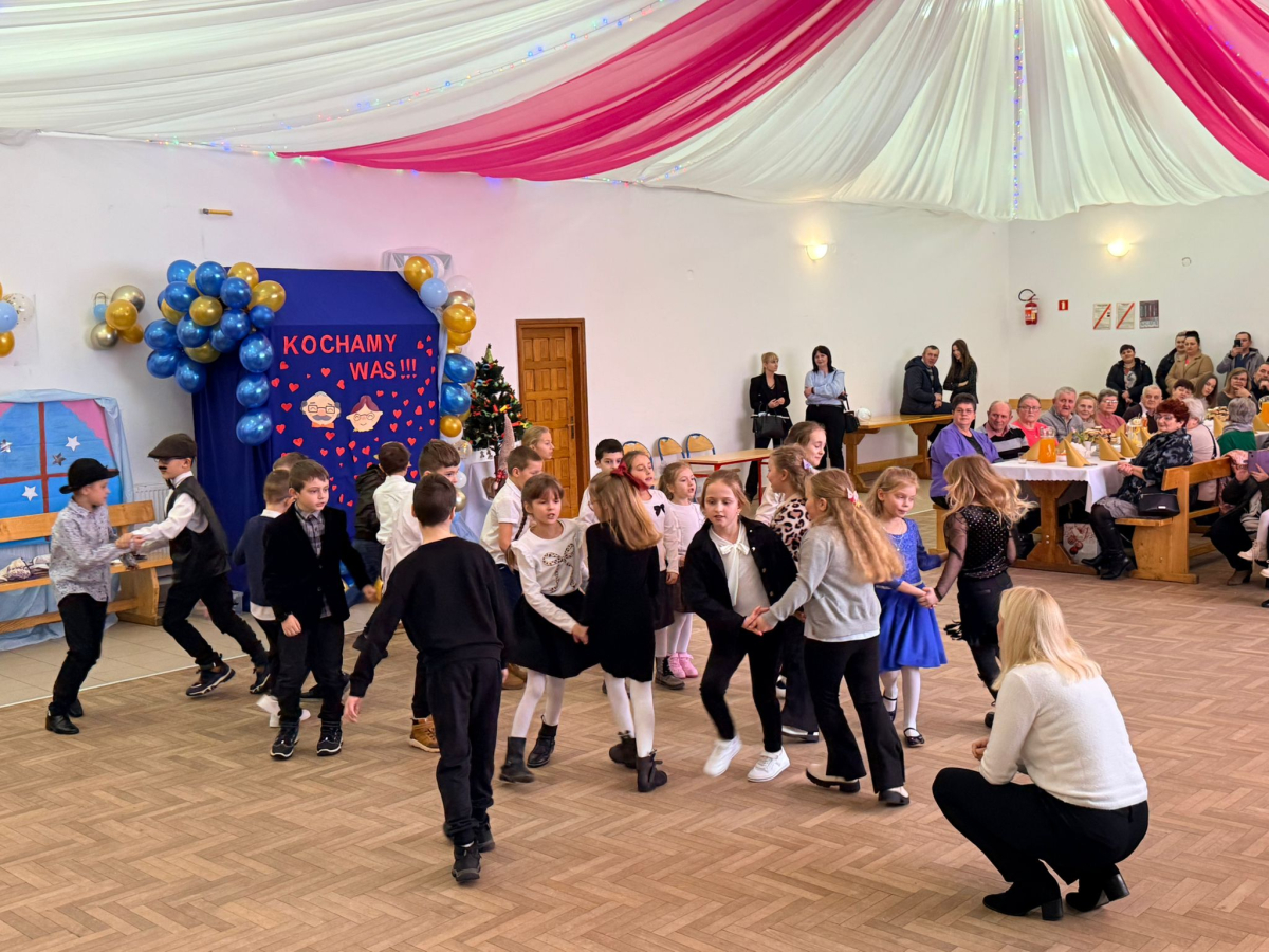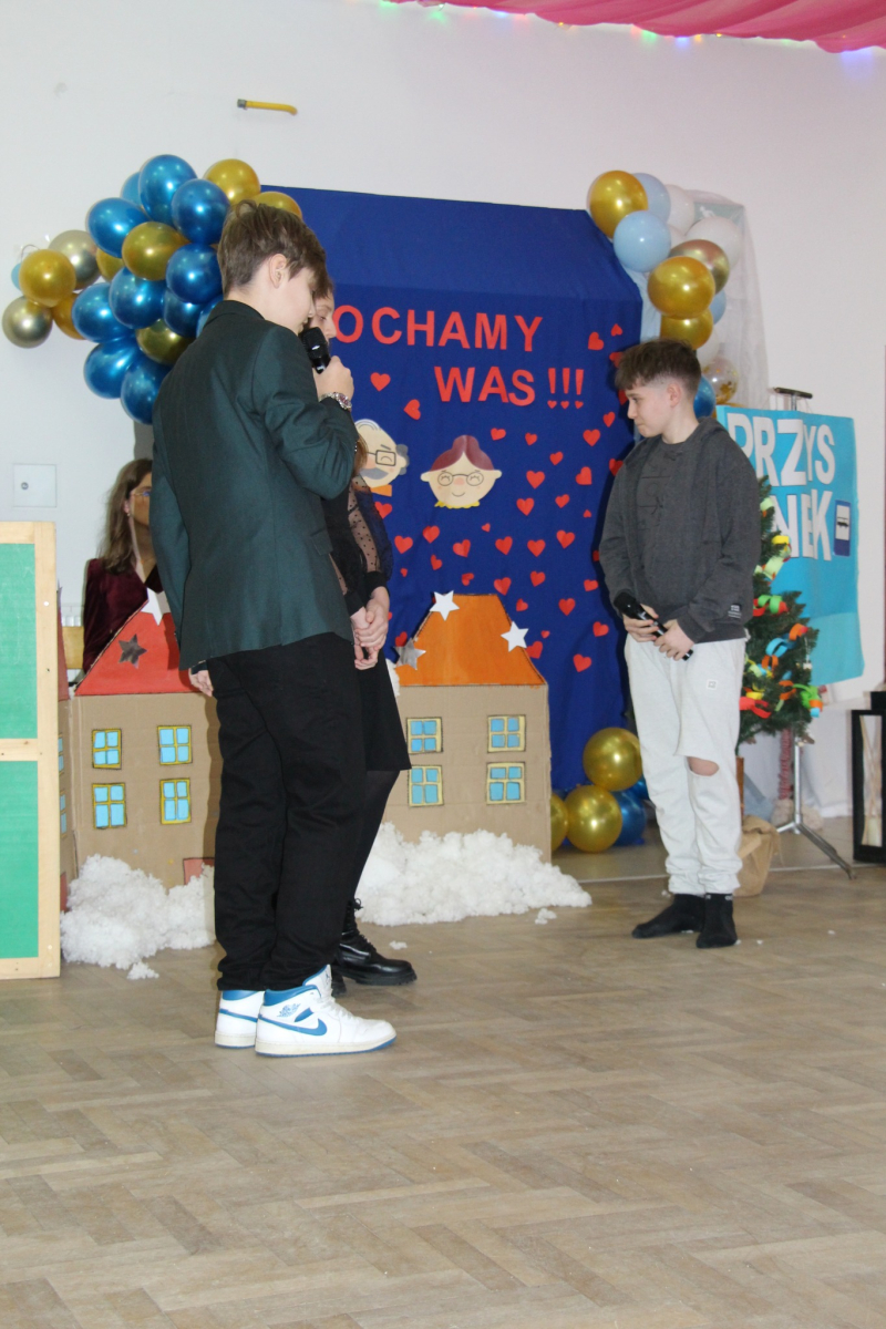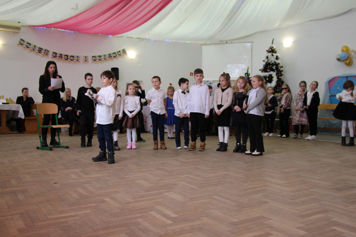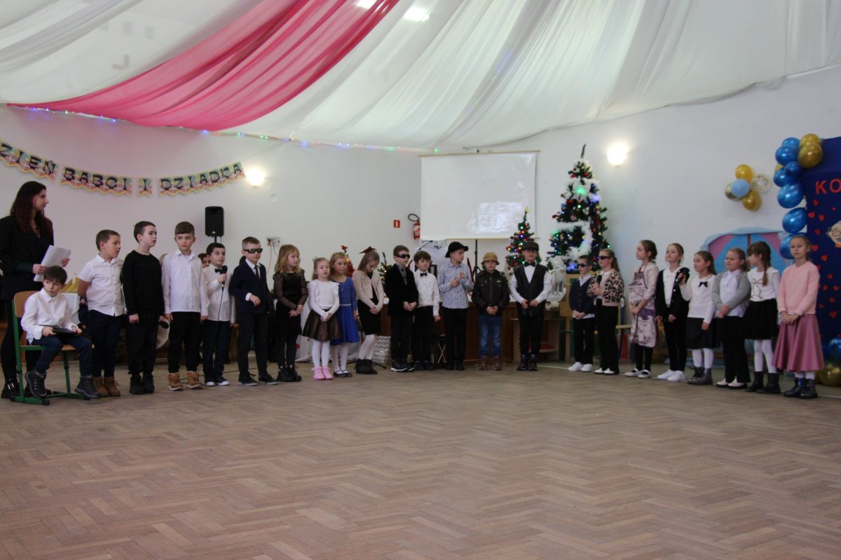 Z okazji Dnia Babci i Dnia Dziadka, uczniowie naszej szkoły przygotowali piękny program artystyczny, pełen jest ciepłych życzeń, piosenek, tańca oraz serdecznych słów dla ukochanych dziadków. Młodzi aktorzy włożyli całe serce w wykonanie swoich wystąpień, prezentując nie tylko swoje talenty wokalne,taneczne ale również wyjątkową radość i miłość, którą czują do swoich babć i dziadków. Najstarsi uczniowie zaprezentowali również jasełka. Po części artystycznej odbyły sie wybory najmłodszych babci i dziadka oraz najstarszych babci i dziadka. Następnie uczennice klasy VIII zachęciły wszystkich gości do wspólnego śpiewania kolęd oraz znanych wszystkim przyśpiewek biesiadnych.
