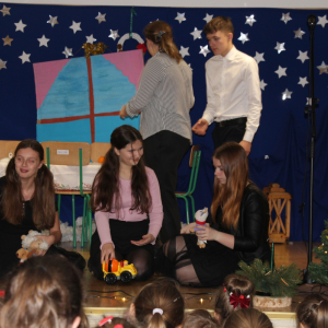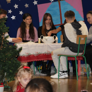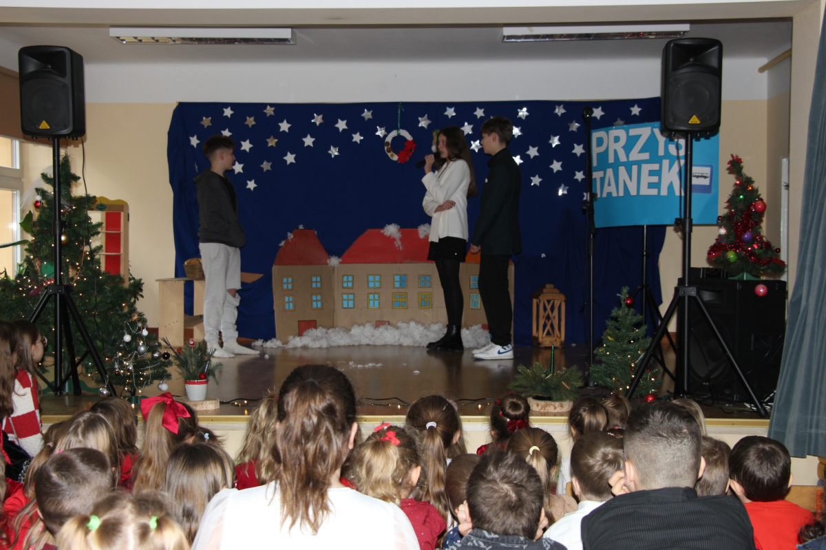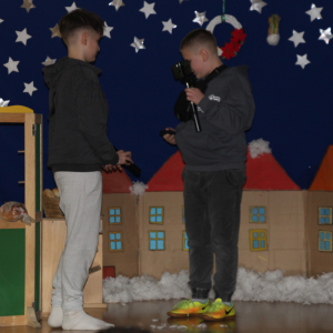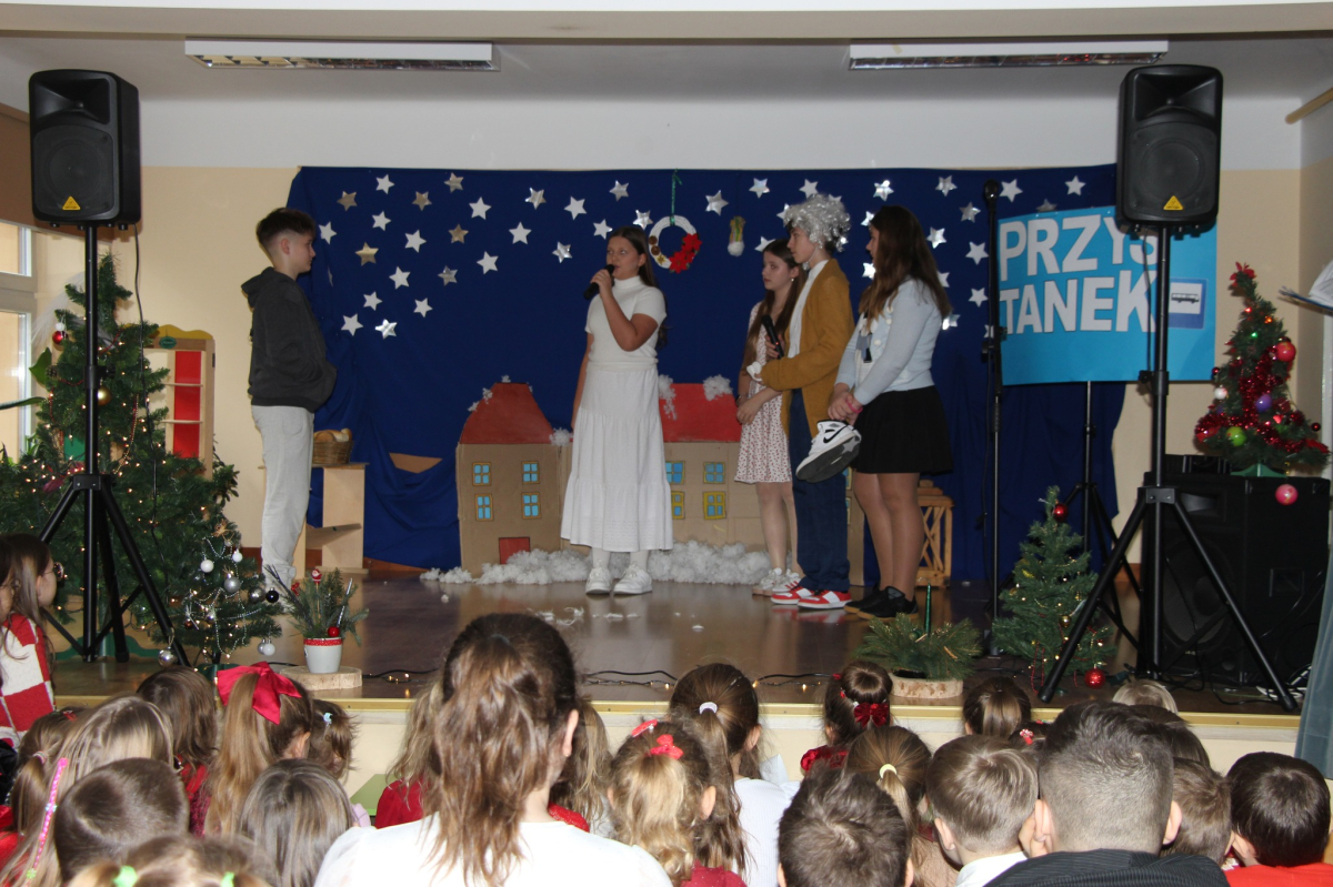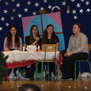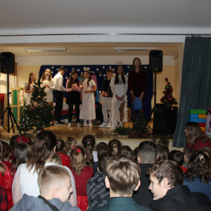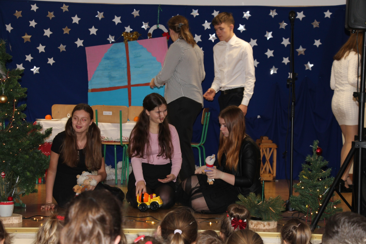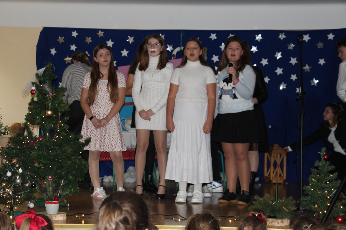 Jasełka to widowisko o Bożym Narodzeniu, które od wieków wpisane jest w polską tradycję. Tegoroczne jasełka zostały przygotowane przez uczniów klas VI, VII i VIII. Sala wypełniła się magiczną atmosferą – dekoracje oraz oczekiwanie widowni sprawiły, że od pierwszych chwil poczuliśmy prawdziwego ducha Świąt. Piękne przedstawienie przypomniało, że święta Bożego Narodzenia to czas radości, wspólnoty i pięknych tradycji . Dzięki młodym aktorom magia tych chwil stała się namacalna dla każdego, kto uczestniczył w tym wydarzeniu. Po jasełkach Pani Dyrektor złożyła wszystkim świąteczne życzenia.