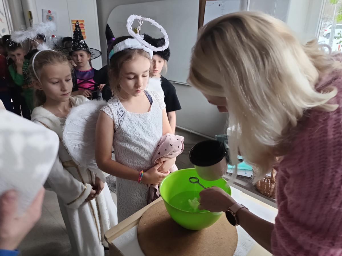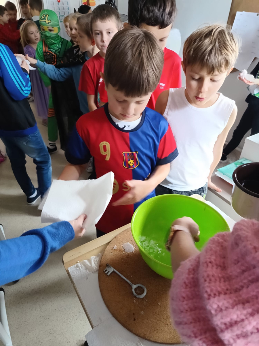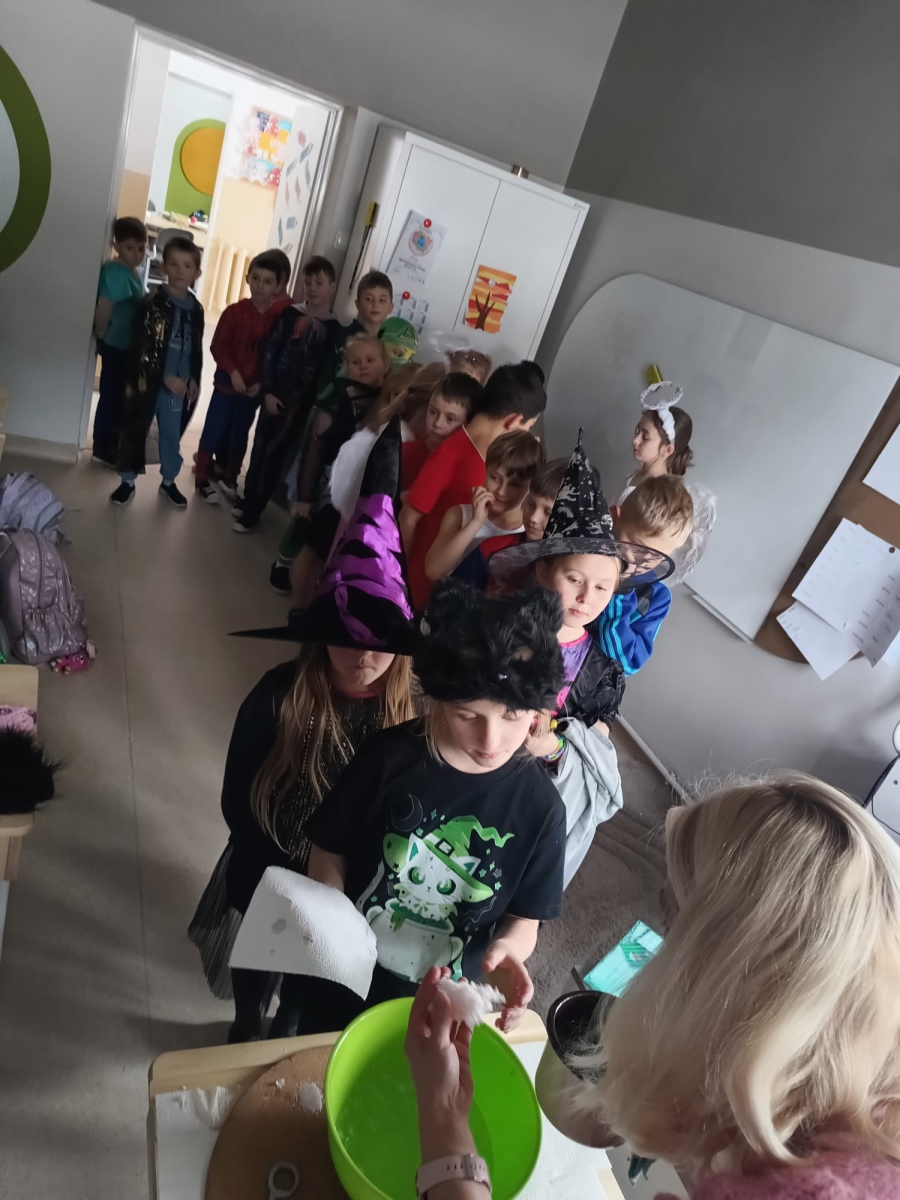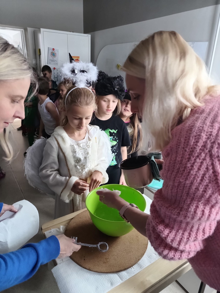 Młodsi uczniowie naszej szkoły z niecierpliwością oczekiwali na ten dzień- dzień tajemniczych wróżb połączony z zabawą, tańcem i poczęstunkiem. Było lanie wosku a panny i kawalerowie sprawdzali kto pierwszy się ożeni lub wyjdzie za mąż. Uczniowie tańczyli przy swoich ulubionych utworach. Zabawy i radości było co nie miara!