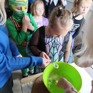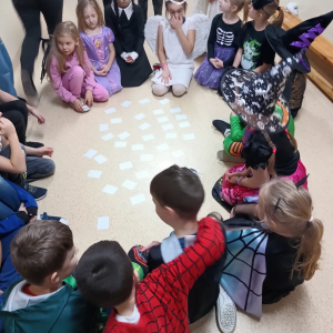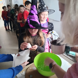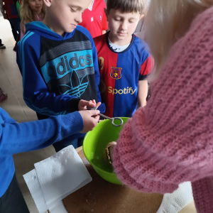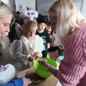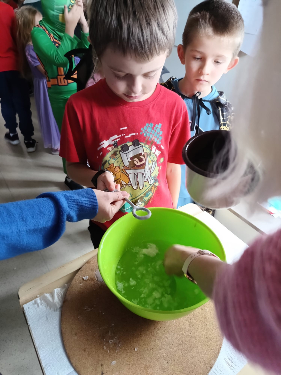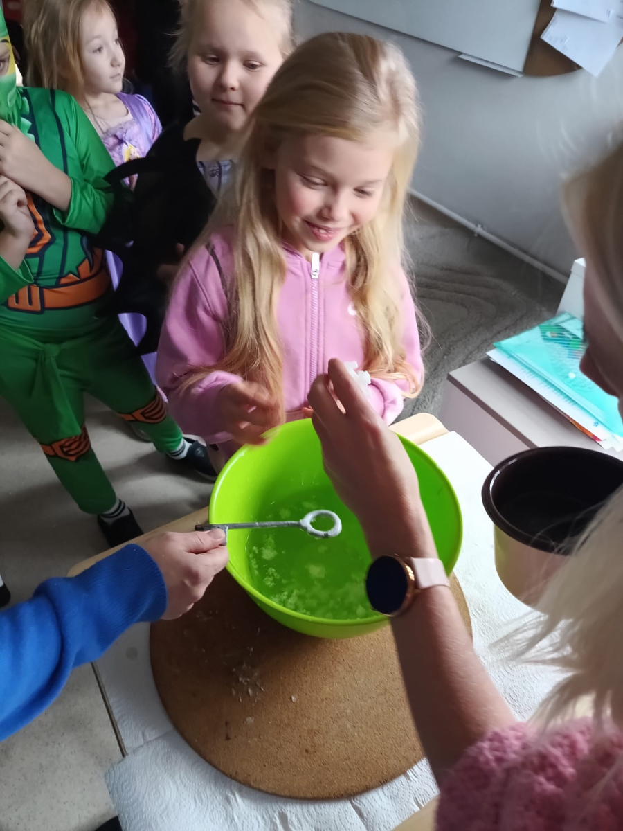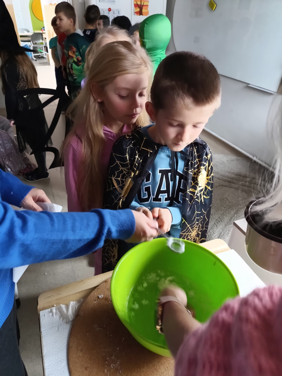Młodsi uczniowie naszej szkoły z niecierpliwością oczekiwali na ten dzień- dzień tajemniczych wróżb połączony z zabawą, tańcem i poczęstunkiem. Było lanie wosku a panny i kawalerowie sprawdzali kto pierwszy się ożeni lub wyjdzie za mąż. Uczniowie tańczyli przy swoich ulubionych utworach. Zabawy i radości było co nie miara!